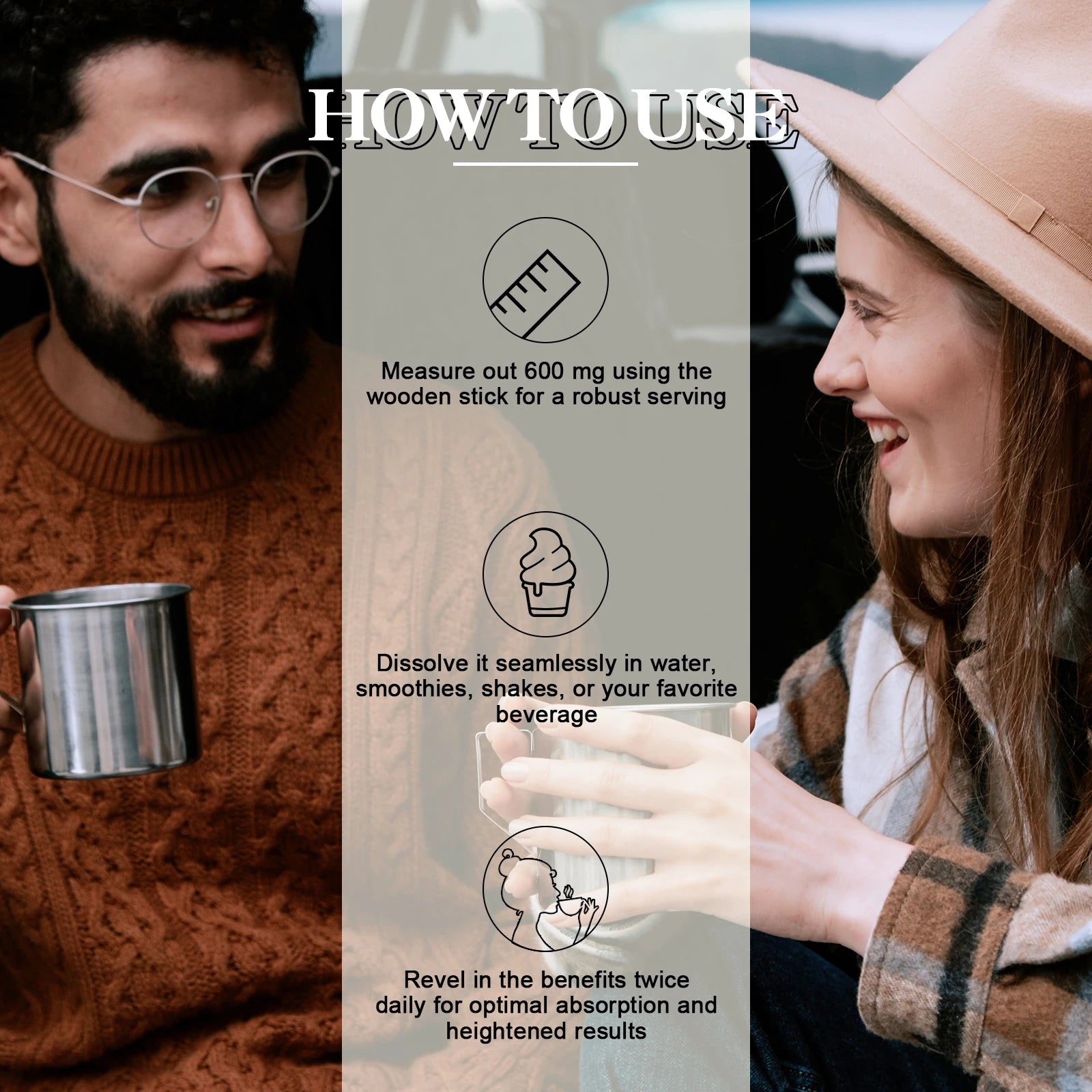 Get the power of shilajit! Sennasi shilajit resin is your unique 85+ trace minerals and fulvic acid powerful source, providing you with the essential minerals your body needs to stay energized. Simply dissolve a pea-size shilajit resin in warm water or add it to your favorite drink and you will take control of your overall wellness with shilajit