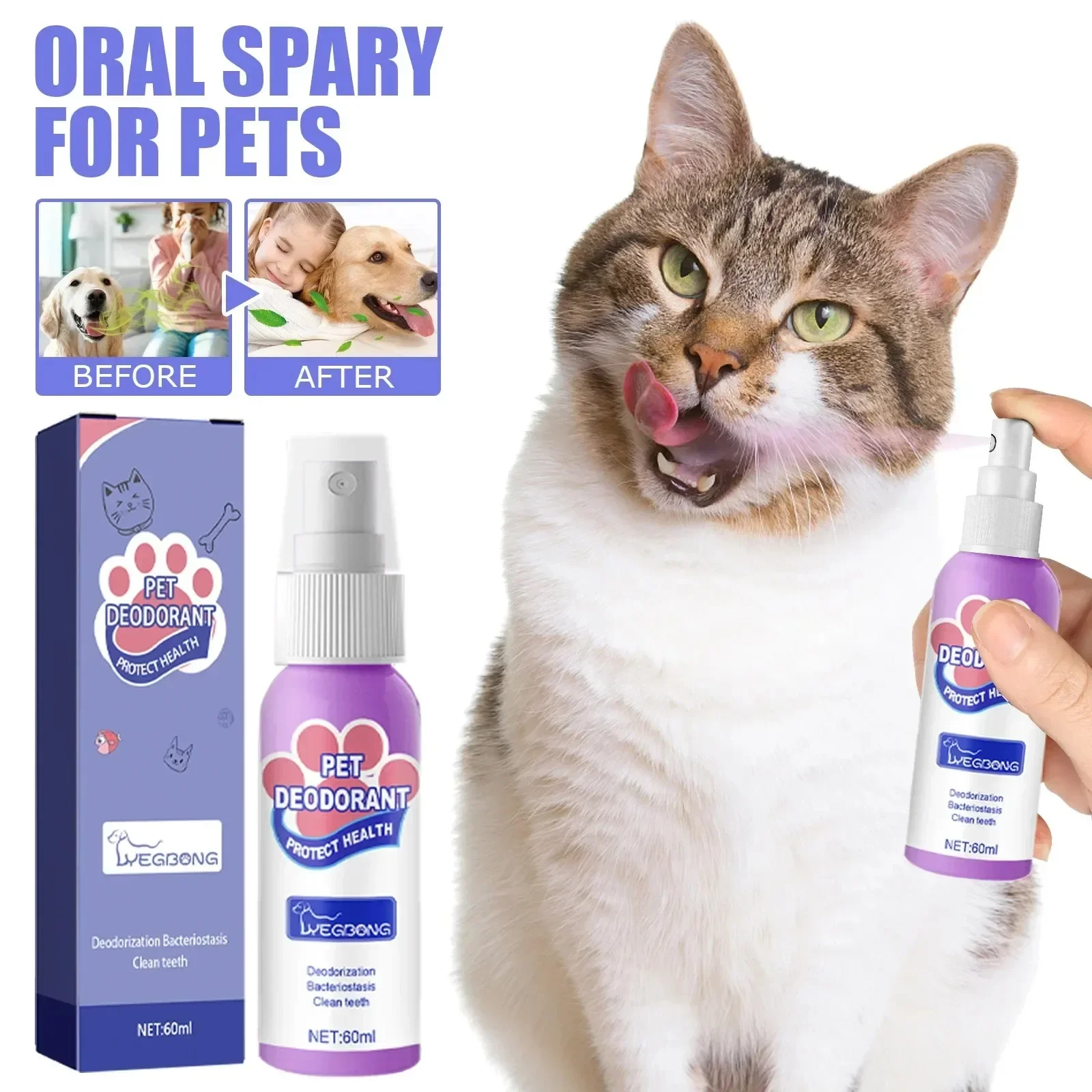 Pet Oral Cleanse Spray Dog Cat Mouth Fresh Teeth Tartar Cleaning Prevent Calculus Deodorant Whitening Pet Teeth Cleaner Spray 60ml