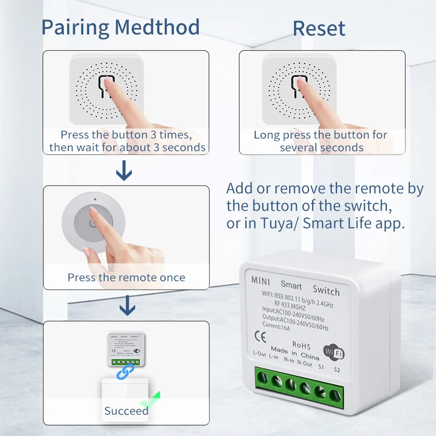 RF 433Mhz Tuya Smart Wifi Switch with Wireless Remote Control Smart Life App Voice Control by Alexa Google Home Alice AC100-240V