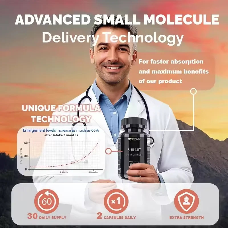 Shilajit Capsule 100% Pure Non-GMo Supports Reproductive Health Natural Energizer
